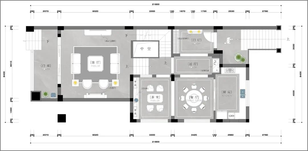 雖然有著540方的超大空間,但設計師依然謹慎地衡量著每一個家具、每一個飾品的尺寸大小和擺放位置,最后呈現的效果,無論是家具還是配飾,均以其優雅的姿態、平和而富有內涵的氣韻,描繪出屋主樂觀平實的生活理念。