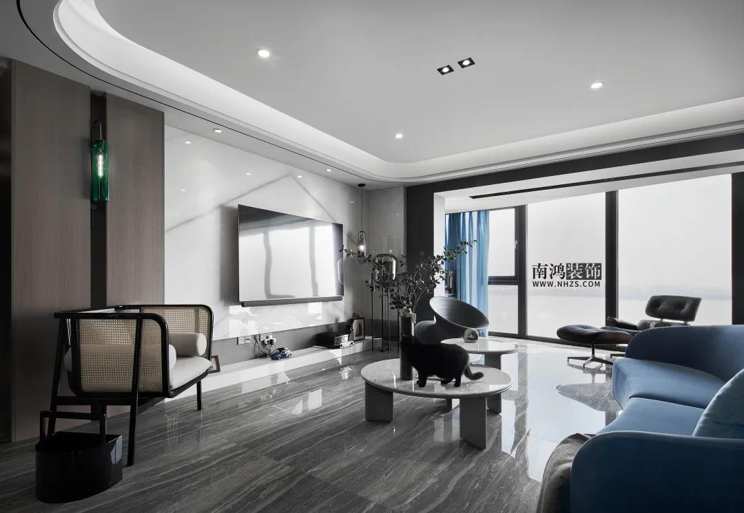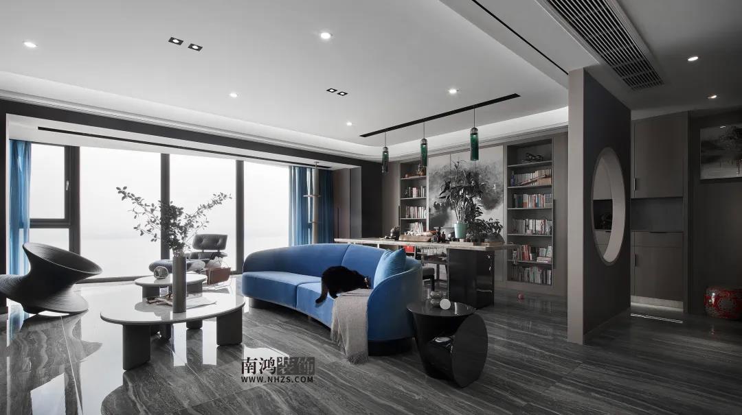 地址 / 觀瀾時代 戶型 / 三室兩廳 面積 / 190㎡ 風(fēng)格 / 現(xiàn)代中式 設(shè)計施工 / 浙江南鴻裝飾 幸福的家庭總是相似的, 但幸福的定義, 對每個人來說或許都不盡相同。 對本案的女屋主來說, 窗外是海天一線的絕色風(fēng)景, 窗內(nèi)是三只愛貓的追逐嬉戲, 閑來品茶凝思,翻卷細讀, 就這樣把日子過成了一首詩。 本案結(jié)合現(xiàn)代風(fēng)的輕奢時尚與中式風(fēng)的古典雅致,色彩搭配上也不落俗套,整體取用冷硬中性色的基礎(chǔ)上,各個空間都加入了許多個性色彩,層次感非常強! 戶 型 圖 ▲原始戶型圖 ▲平面設(shè)計圖 設(shè)計說明: ①餐廚之間新建墻體,增加儲藏室的空間; ②客廳包進陽臺做落地窗,將房子的景觀優(yōu)勢發(fā)揮到最大; ③公區(qū)域通往臥室的內(nèi)廳過道整體往南移,主臥釋放一部分面積留給客房,平衡主客房的空間大小。 玄 關(guān) Entrance 原戶型中并沒有玄關(guān)區(qū)域,我們在茶室旁砌筑了這道168cm*235cm的墻體,以中式常見的借景手法打造門廳,并將茶室區(qū)的柜子延伸過來作玄關(guān)柜使用。 客 廳 Living Room 一氣連江色,寥寥萬古清。客廳將陽臺包進做落地窗,再加一把面料舒適的躺椅,每日觀覽著江波浩渺,俗世的煩擾轉(zhuǎn)瞬就能被驅(qū)散得干干凈凈。 湖水藍的弧形沙發(fā),橡木大理石結(jié)合的茶幾,黑色烤漆角幾,陀螺椅......客廳內(nèi)各色材質(zhì)多樣、姿態(tài)各異的家具被有序排列著,再加上綠植點綴,空間在干練精致之余,更顯出生機勃勃的氣息來。 沙發(fā)背后便是因女主人愛好而特意設(shè)置的休閑茶室區(qū)了,背景的藝術(shù)壁畫烘托雅致氛圍,兩側(cè)書柜用來收納主人心愛的藏書,靠近陽臺的地方還做了貓爬架,喵主子們當(dāng)然也不能怠慢啦~ 餐 廳 Dining Room 餐廳做島臺餐桌一體式設(shè)計,實用性和使用感都很好,黑白搭配帶來明凈的視感,自然的石材肌理配合空間情境,更顯素雅沉靜。 廚 房 Kitchen 廚房,淺色模壓櫥柜門帶來輕盈、舒緩的視覺體驗,黑色把手干凈利落,頂部做白色集成吊頂,空間更加明亮。 廚房靠近餐廳的地方延伸出去做了一塊西廚區(qū),吧臺搭配高腳凳,閑時品一杯紅酒,嘗一嘗親手做的糕點,別有一番情趣。 臥 室 Bedroom 芥末黃提供主臥進門的第一視感,帶來鮮活的生命力,也是主人對美好生活的積極期許。 主臥真是滿滿的女王氣質(zhì)!宮廷色鋪底,背景墻結(jié)合浮雕質(zhì)感的凹凸藝術(shù)硬包,個性特質(zhì)拉滿,窗邊設(shè)置獨立浴缸,品質(zhì)生活更上一層樓。 融合多種材質(zhì)元素,以現(xiàn)代風(fēng)格的利落表現(xiàn)結(jié)合中式古典的優(yōu)雅個性,成就別具一格的氛圍感。 黑色鐵藝百葉窗搭配黑白花磚,陽光從間隙里參與進來,空間里點滴都是時光流淌歲月如歌的美好記憶。 床尾的梳妝空間,奶黃色背景搭配梅紅的矮凳和水藍色梳妝臺,飽滿的色彩極具張揚個性。 客房,淺青色背景結(jié)合藤編材質(zhì),營造清朗舒適的睡眠環(huán)境,宛若美好的早春時節(jié)。 衛(wèi) 生 間 Toilet 衛(wèi)生間墻地面由石紋瓷磚鋪就,深淺不一的灰色打造層次感,整體空間明亮,現(xiàn)代感強烈。