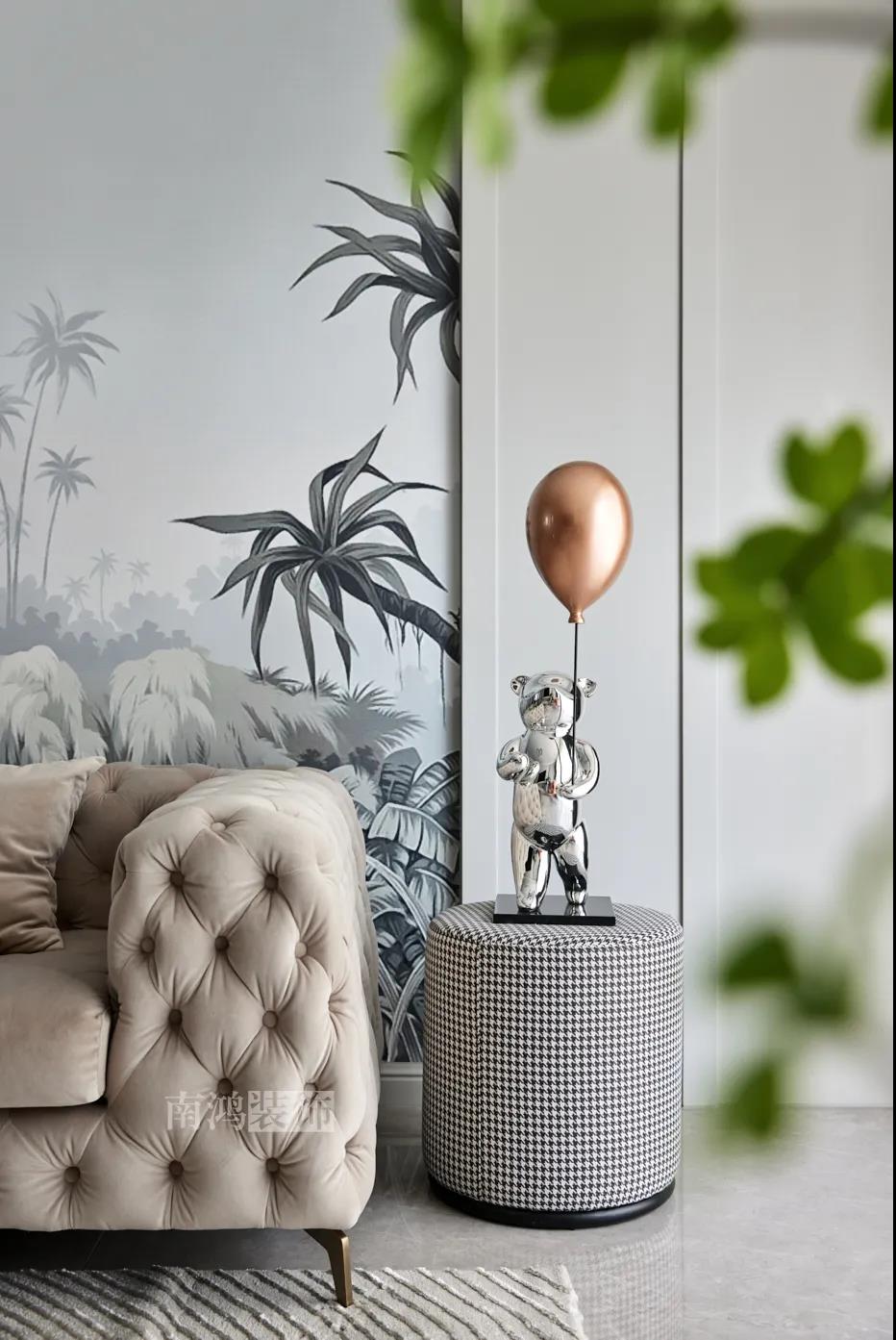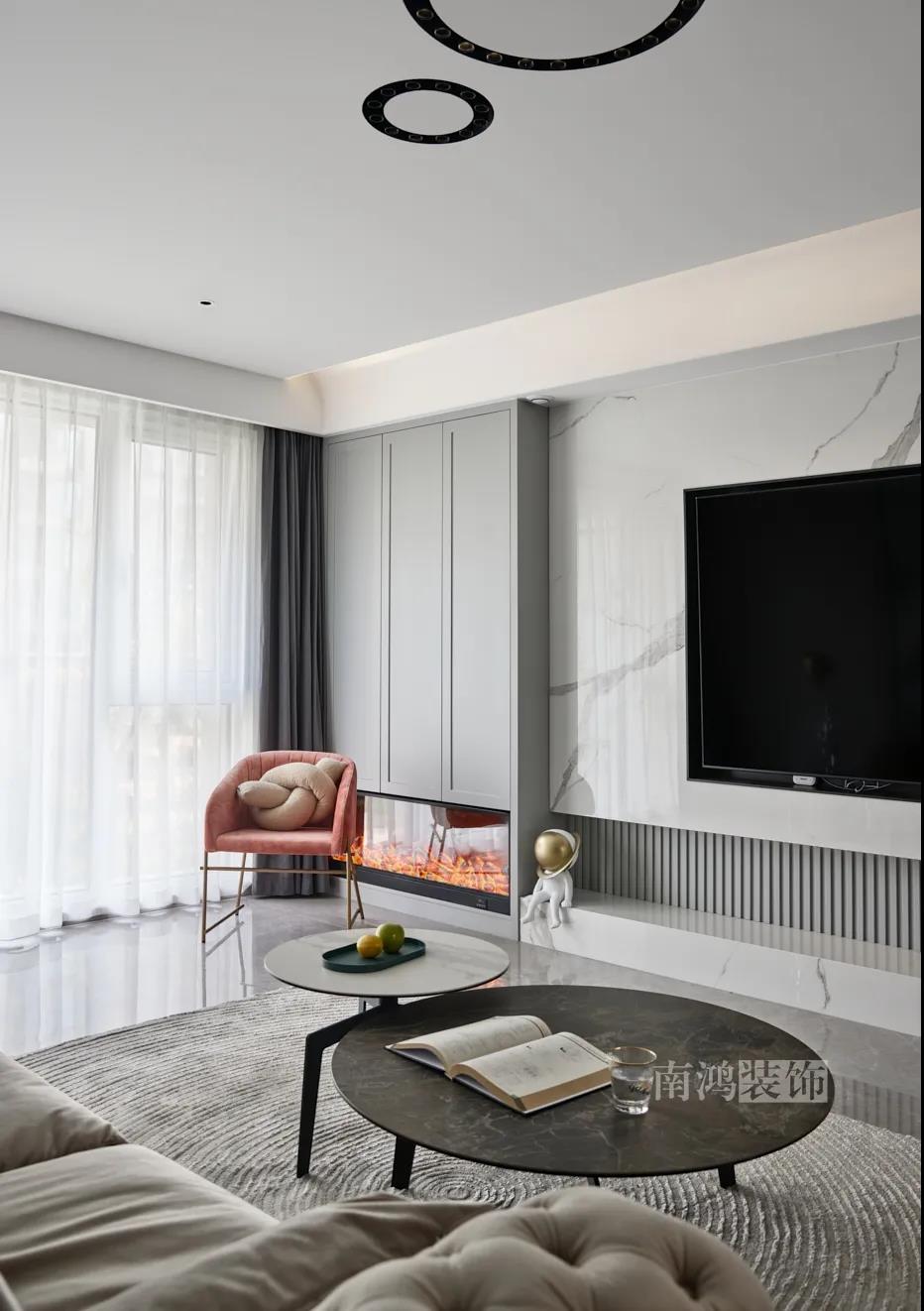 01. 客戶需求 本案的屋主非常喜歡小美式風格的清新自在,又向往著現代簡約所傳達的生活理念,所以設計師依照他的喜好,將兩種風格元素巧妙糅合,讓整體空間在浪漫優雅的情調中傳遞出主人的獨特品味。 02. 裝飾亮點 REFRESHING 擯棄了粗暴的材質堆砌,將小美式與現代簡約巧妙結合在一起,色調上選用低飽和度的高級灰與柔和的莫蘭迪色,致力于呈現一個唯美純粹、具備高級感的美學空間。 03. 戶型圖 04. 設計落地 客 廳 客廳以高級灰為主基調,低飽和度的特性使得它具備很強的包容性。 電視背景將美式的經典線條護墻與利落的大理石磚組合,沙發背景則做了木護墻隱形門處理,配以簡單干凈又不減細節的吊頂,既實現了兩種不同風格元素的結合,又能讓造型為居家功能服務。 靠近陽臺擺放一把亮麗單椅,電子壁爐內躍動著溫暖的火苗,成為美妙的休憩一角。 節制而有意蘊的設計手法,賦予空間最具詩意的內涵表達。 開放的領域中,客餐之間連貫而又相對獨立,在敞闊的尺度中讓主人感受到家的舒適。 餐 廳 餐廳,是讓人走近便頓覺眼前一亮的空間所在。花朵般嬌嫩的煙粉色,是莫蘭迪色系中超有存在感的一派,又如晚霞,純凈美好,撲面而來便是夢幻與浪漫的氣息。 餐廳處還添加入西廚的功能,讓廚房實現多功能化,同時弱化了原區域的狹長感。 過 道 “人生忽如寄,莫辜負茶、湯和好天氣。”清朗平和的過道景致,自給人一種寧靜的深邃感受。 臥 室 臥室刪繁就簡,通過淺色的床品與干凈的硬包背景,營造簡約純粹的清韻。 兒童房是一個多姿多彩的空間,活潑的星星圖案,多種低飽和色調搭建的背景墻面,整體氣氛輕松愉悅,作為一個成長型空間來說也充滿著可塑性。 衣 帽 間 純白的視象,抽離了所有多余的表達,兩側衣柜默默擔當著收納的使命,井然有序地包容著一切冗雜。