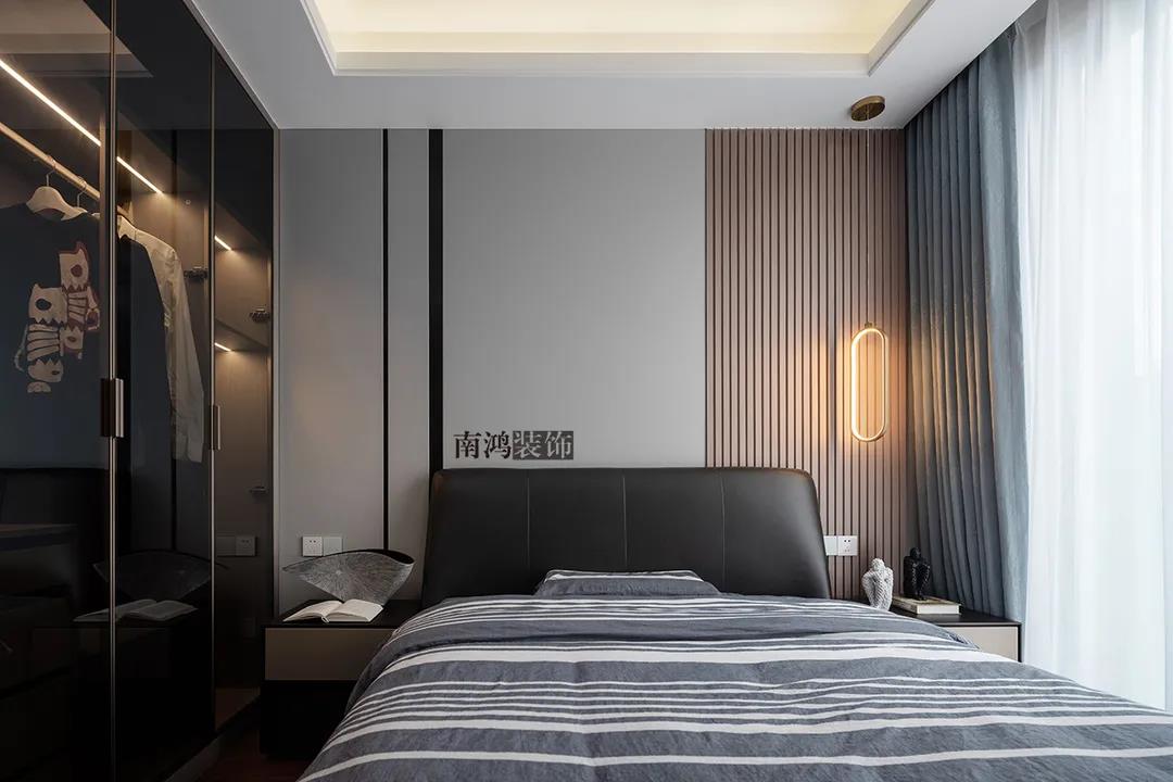 ▲客廳、臥室背景墻木格柵的實(shí)景效果
